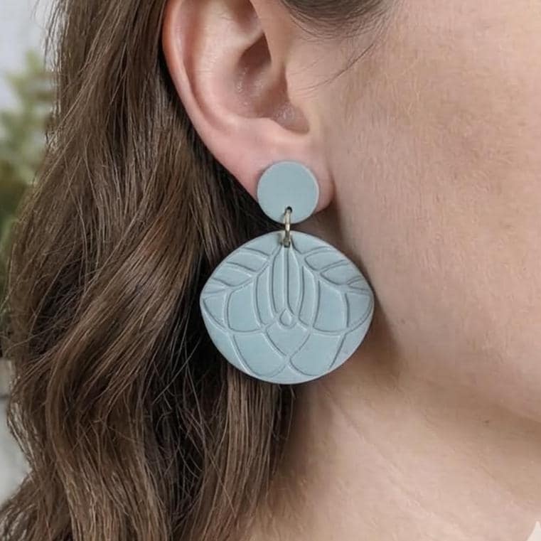 Color & Design: A gorgeous, trending Eucalyptus Green or Celadon color that pairs beautifully with neutrals and Earth tones. The unique mandala-like shape / Arch silhouette is a true statement earring without the weight.